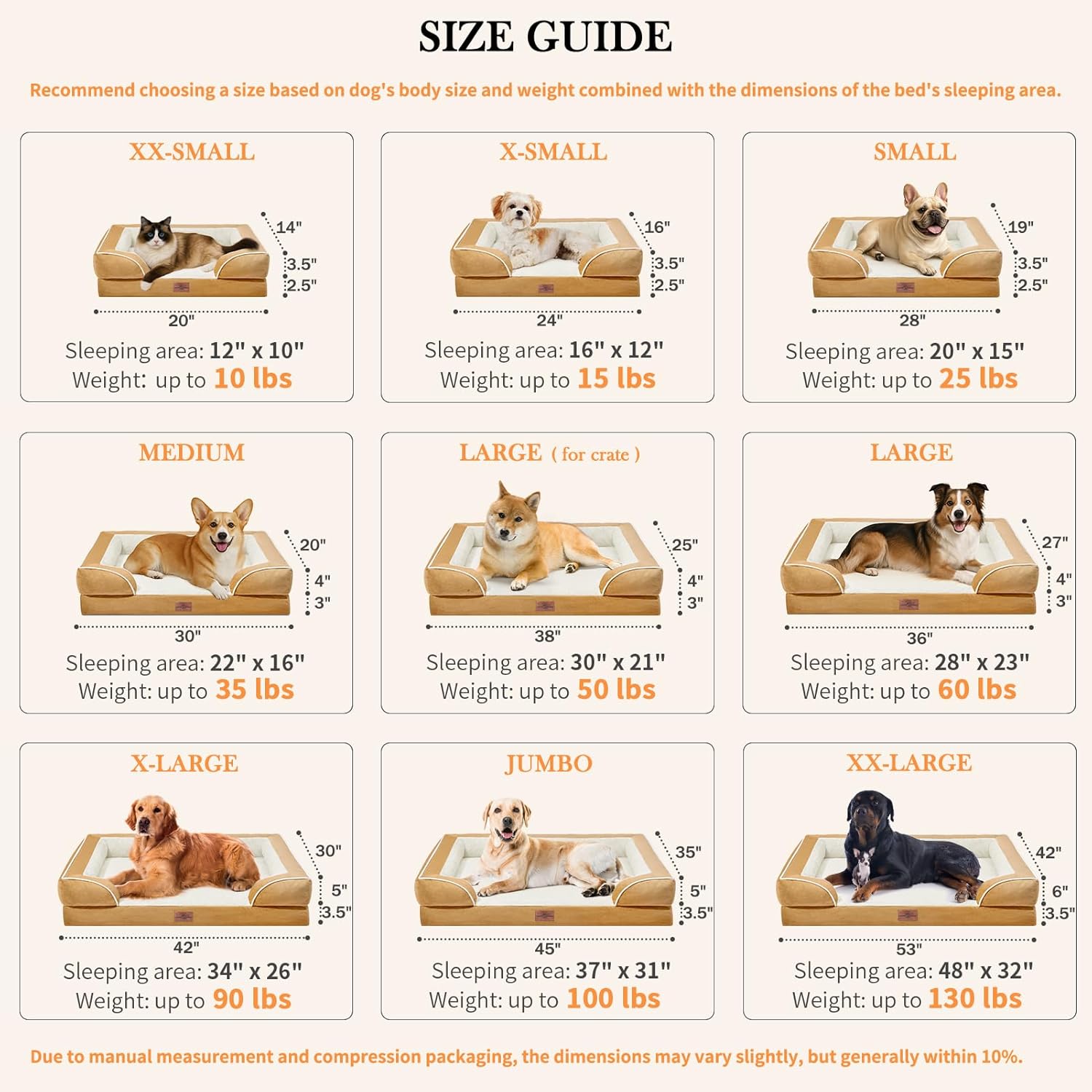 Comfort Expression Jumbo Dog Beds Orthopedic Foam, Waterproof Dog Beds for Jumbo Breed Dogs, PV Washable Dogs Sofa Couch with Removable Cover & Non-Slip Bottom(Khaki)