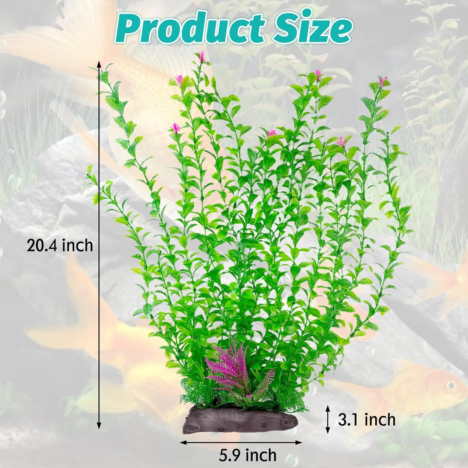 - TALL AQUARIUM PLANTS EASY TO MAINTAIN : Aquarium plants plastic do not require specialized lighting, fertilizers or carbon dioxide. Compared to real plants, large aquarium plant is very easy to clean, saving time and effort and eliminating the hassle of maintenance. These fish tank plants for decorations look lifelike and can be used for a long time, making it easy for you to enjoy the wonders of the aquarium world. Artificial aquarium plants size: 20.4 inches (H), ceramic base: 5.9 Γ 3.1 inches.1 pcs artificial aquarium plant to make your aquarium vibrant and more beautiful
