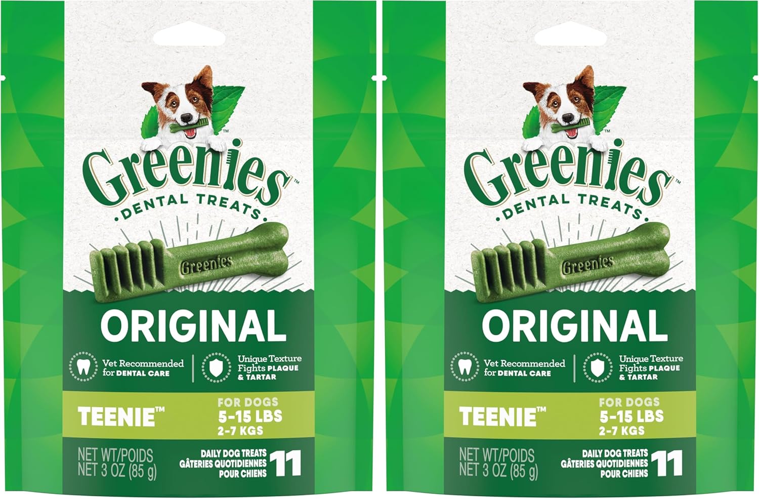 - Contains one (1) 3-oz., 11-count pack of GREENIES Original TEENIE Natural Dog Dental Chews; Natural Dog Treats Plus Vitamins, Minerals and Other Nutrients