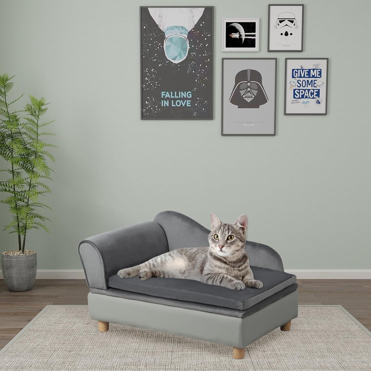 Pet Bed Sofa, Puppy Bed with Storage, Small Dog Couch with Removable & Washable Cushion, Comfy Pet Couch Bed for Cats & Puppy (Gray)