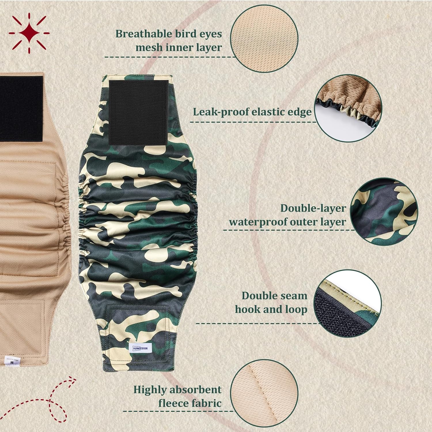 - Washing and care precautions: The doggie diapers for male dogs small is designed with precision stitching for durability and can withstand daily use and frequent washing. When washing, please carefully turn the product over to expose the lining and fasten the hook and loop fasteners. Male dog nappies can be machine washed at 30ยฐC (below 86ยฐF) or below, tumble dried, or air dried at low temperatures. No bleach, no softeners.