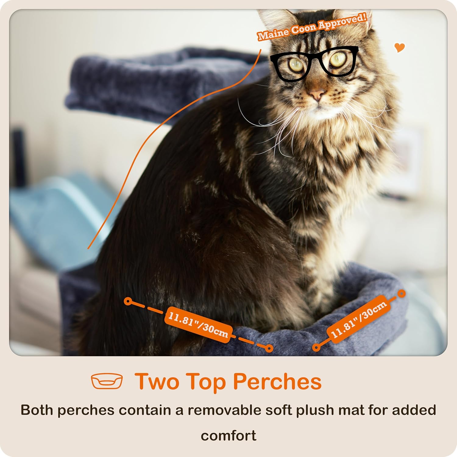 - [All-in-One Comfort & Fun] This cat climbing tower is packed with features and wrapped in soft 400g/m² plush fabric for a cozy experience. The sturdy steel-framed cat tree hammock on the second level offers a secure and comfy resting spot, while the scratching ramp to the third level provides both scratching and easy access for kittens, adult cats, and seniors. A perfect cat tree for indoor cats