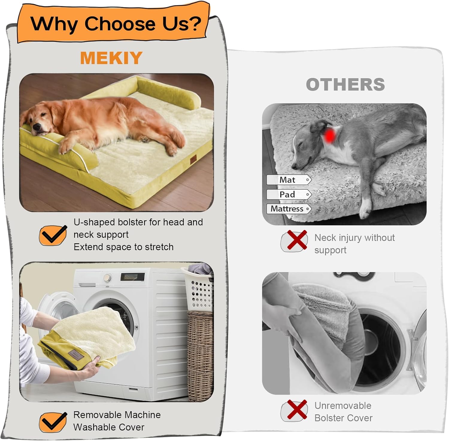 Large Dog Bed Orthopedic Washable - Waterproof with Removable Cover - Memory Foam - Beds Bolster Pet - Couch Sofa - XXXL Large Big Jumbo Dogs - Ginger Yellow Giant Dog Bed