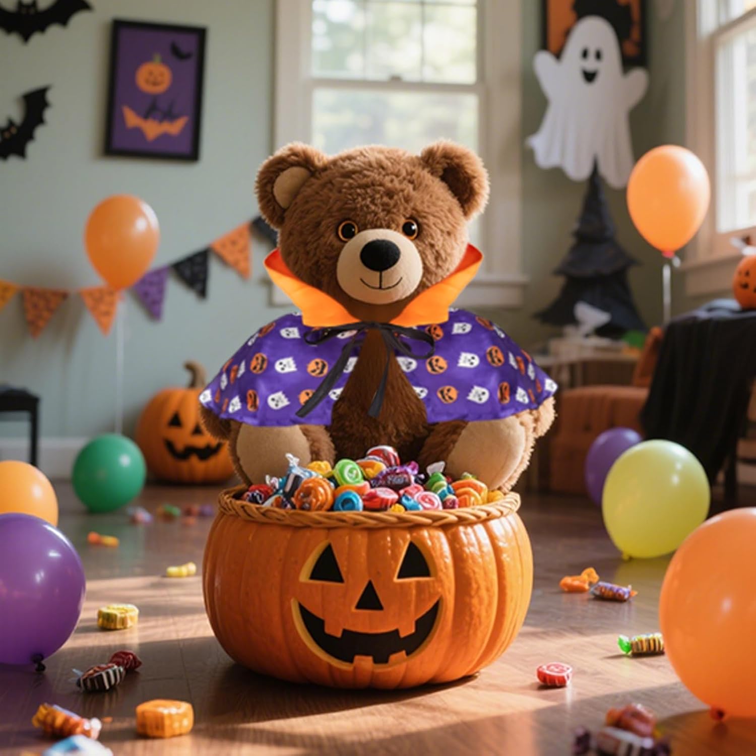 - Halloween pumpkin cape with ghost and pumpkin elements, purple and orange color matching is more Halloween atmosphere. Play as a trick-or-treaters and do tricks if you don't give them meat.