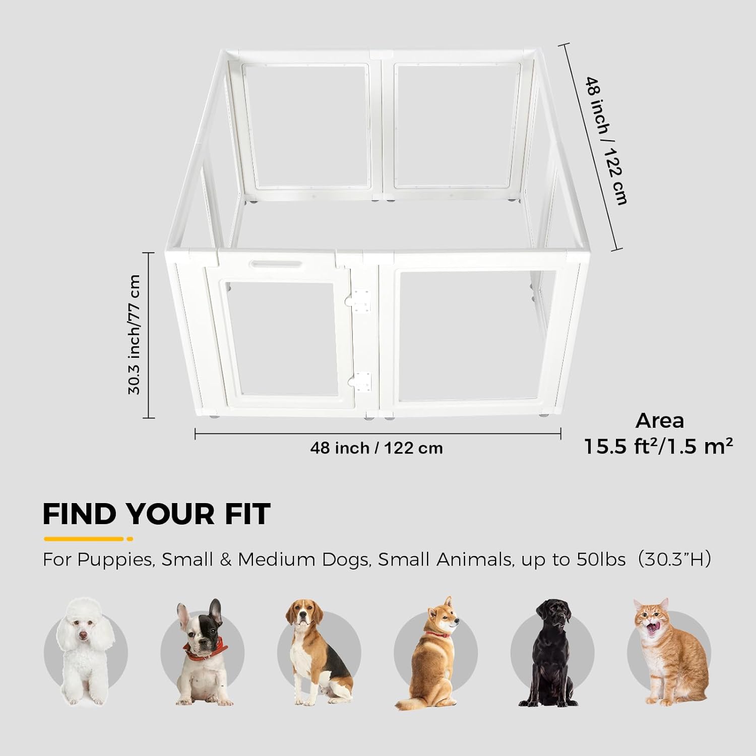 Clear Acrylic Plastic Dog Playpen - Clear Dog Play Pen - Easy Assemble Acrylic Dog Playpen - Puppy Playpen, Cat Playpen, Small Animal Playpen, Dog Play Pen Indoors (White, 30.3" H, 8PCS)