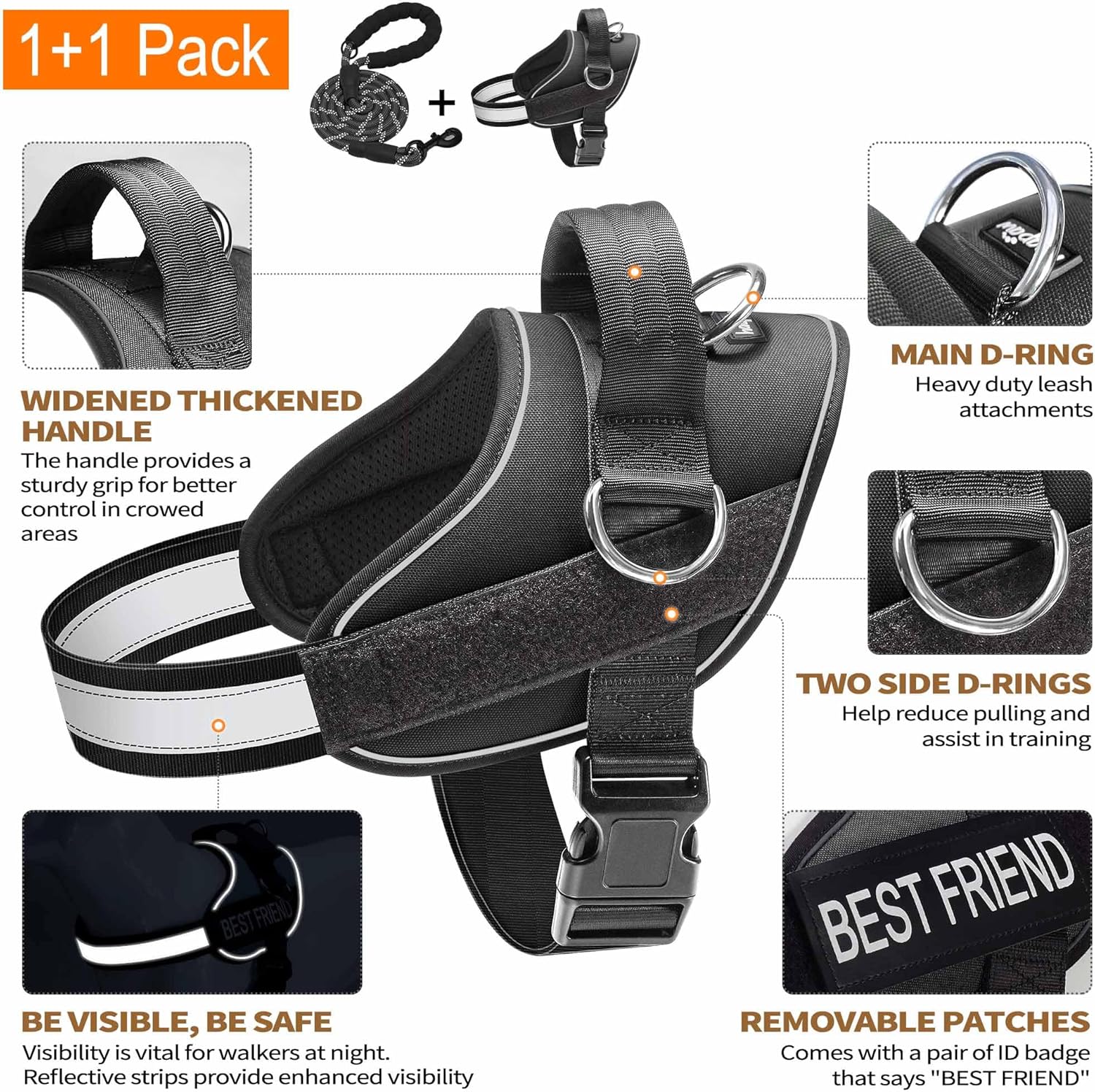 - 【Heavy-duty Dog Harness】 Specially designed for powerful robust dog. The heavy-duty harness is crafted from durable nylon, reinforced with sturdy stitching