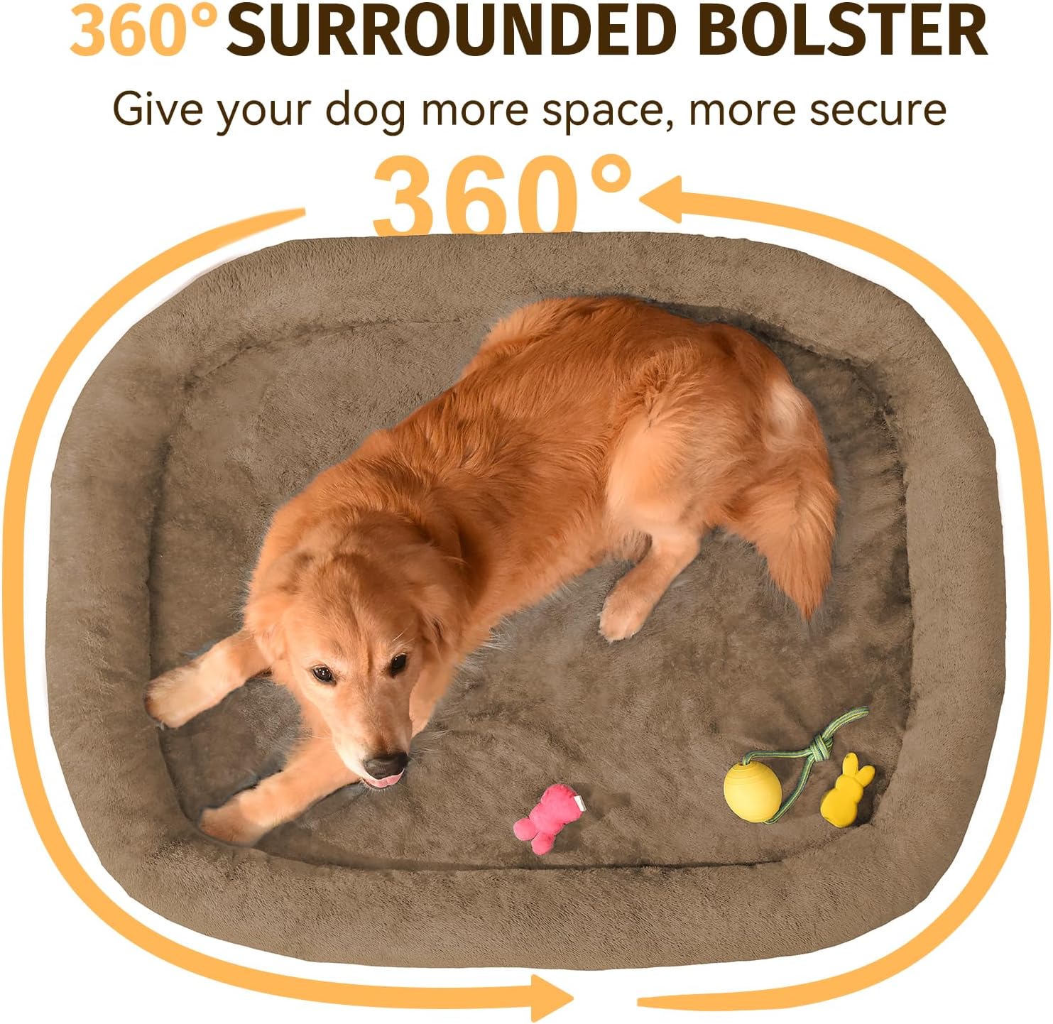 - 360Β° Surrounded Support: This 360Β° full circle design creates a secure sleeping environment, making dog bed large ideal for dogs who prefer a more enclosed space; The bolsters also served as a headrest that provides additional support for the neck and back; Whether your dog likes to curl up or stretch out, this orthopedic dog bed accommodates all sleeping positions