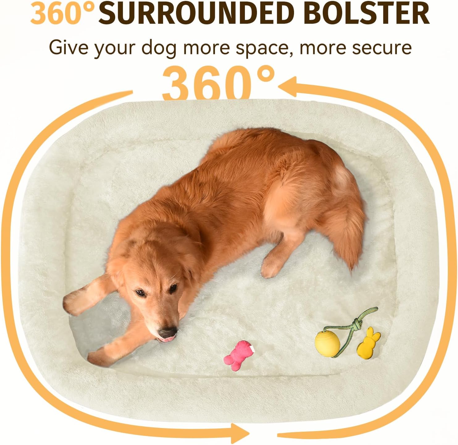 - 360Β° Surrounded Support: This 360Β° full circle design creates a secure sleeping environment, making dog bed large ideal for dogs who prefer a more enclosed space; The bolsters also served as a headrest that provides additional support for the neck and back; Whether your dog likes to curl up or stretch out, this orthopedic dog bed accommodates all sleeping positions