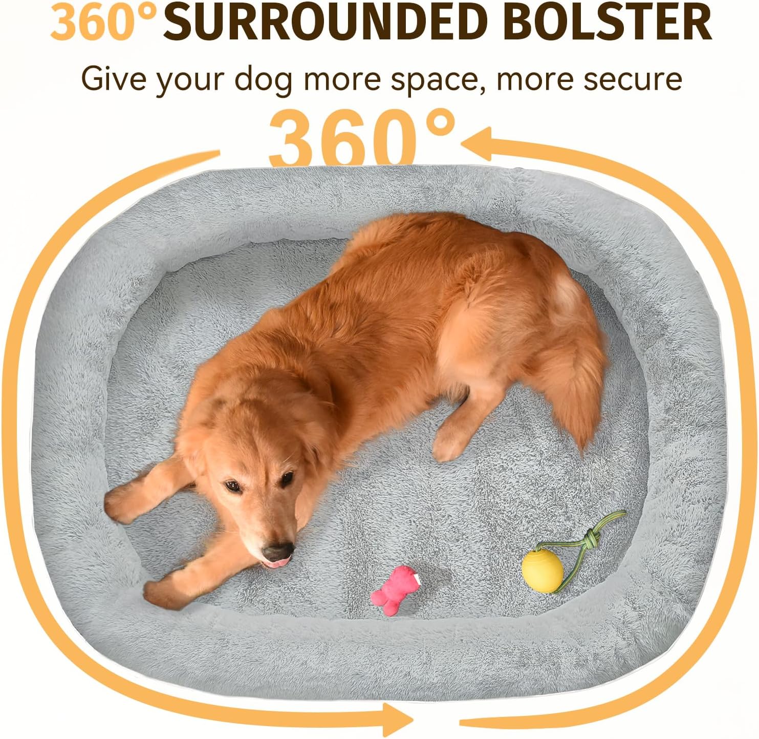 - 360Β° Surrounded Support: This 360Β° full circle design creates a secure sleeping environment, making dog bed xl ideal for dogs who prefer a more enclosed space; The bolsters also served as a headrest that provides additional support for the neck and back; Whether your dog likes to curl up or stretch out, this orthopedic dog bed accommodates all sleeping position