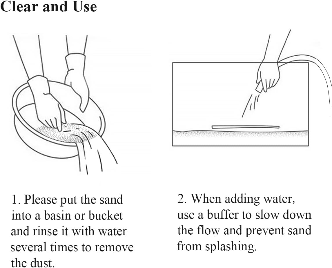 - 【Safe】 No toxins, no foreign matter, fine sand. Note: the fine sand has some dust and needs to be washed with water a couple of times before putting it into the tank