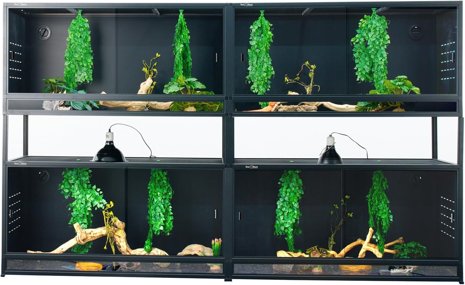 - ăSturdy and Easy Installed PVC Reptile Enclosureă: Non-reflective black-tinted side and back panels provide the reptiles with privacy and security, reducing their anxiety and minimizing the stress for them, no need to prepare an extra reptile tank background instead. Enhanced support terrarium frames make this reptile enclosure sturdy and durable enough for both young and adult reptile pets