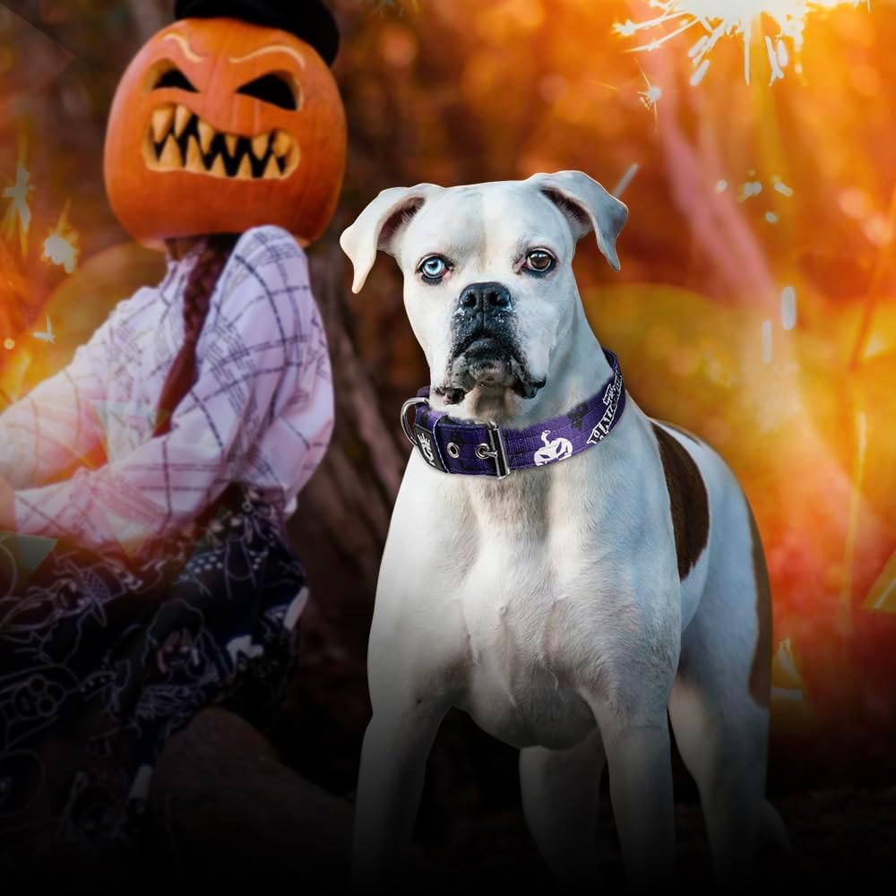 - Durable Comfortable Material: The polyester of this halloween dog collar or christmas dog collar is thick, tough yet comfortable,and the soft padded lining provides a comfortable wearing and avoid your dog from rubbing against the skin. When you receive and feel the big dog collars you will know that it was made with quality and care