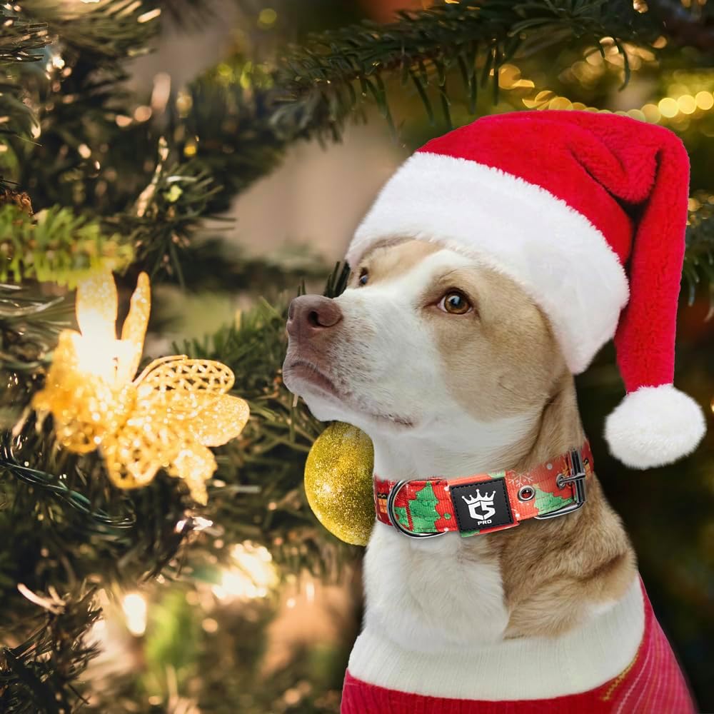 TSPRO Tactical Dog Collar 1.5 Inch Wide Thick Dog Collars with Heavy Duty Metal Buckle, Durable, Strong, Adjustable for Medium to Large Dogs (Christmas Red L)