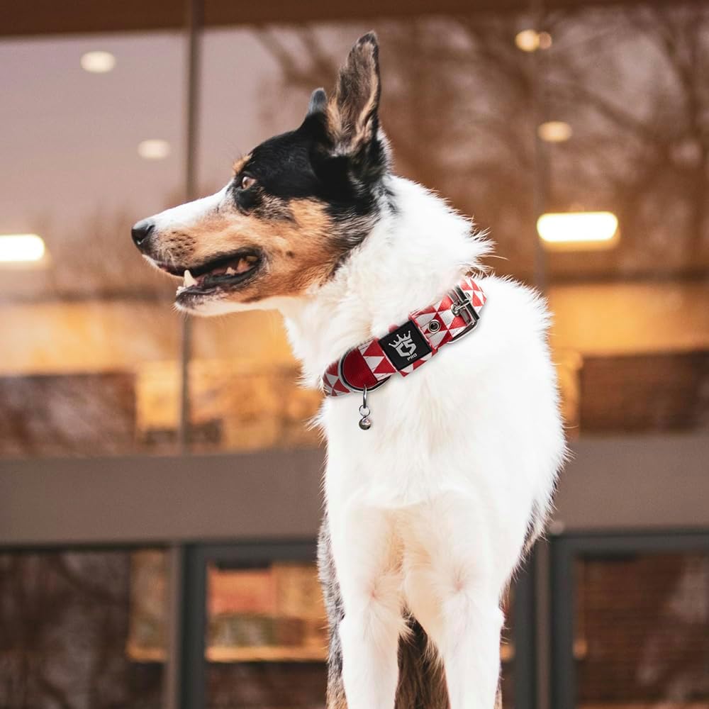 - Metal Collar for Dogs: The dog collars for medium dogs and large dogs with 4 adjustable points, easy to adjust the comfortable fit and attach to dog leash or dog collar. Please follow the size chart to measure your dog carefully before purchasing to ensure the halloween collar for dogs or christmas collar for dogs are fit well to your dog. For dog neck (L: 18.9β-21.7β, M: 15.8β-18.9β, S: 12.6β-15.8β)