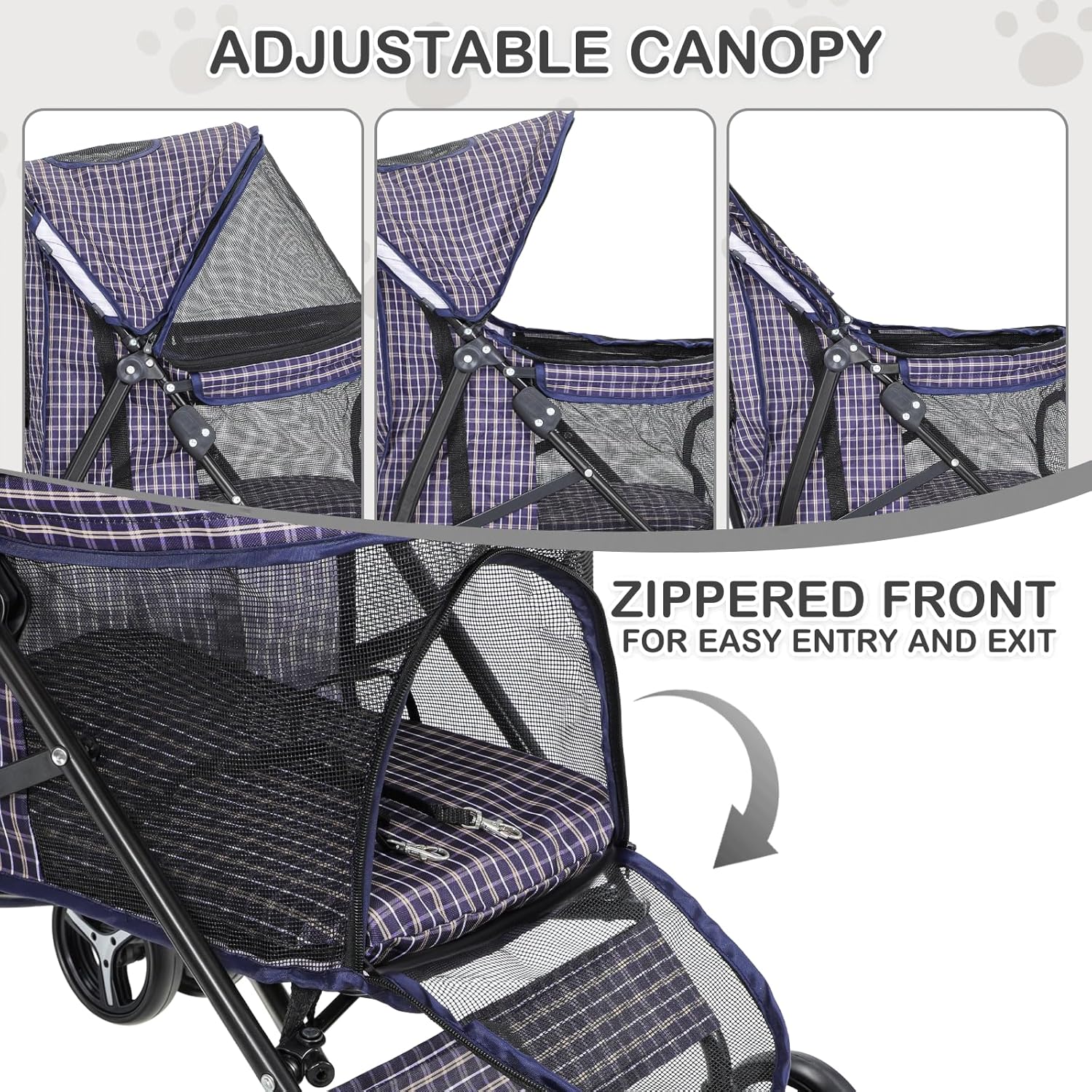 MoNiBloom 4 Wheels Pet Stroller, Easy-Fold Umbrella Shaped Dog Cat Jogger Stroller w/Storage Bag & Visible Mesh for Small/Medium Dogs Cats Plaid