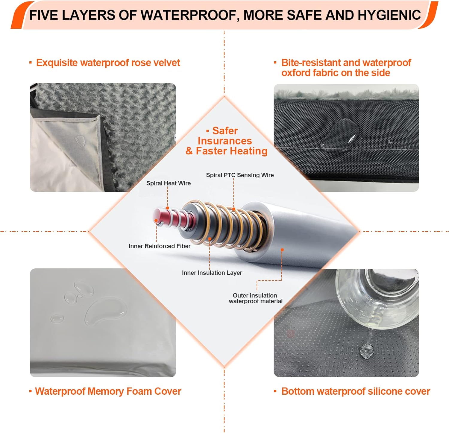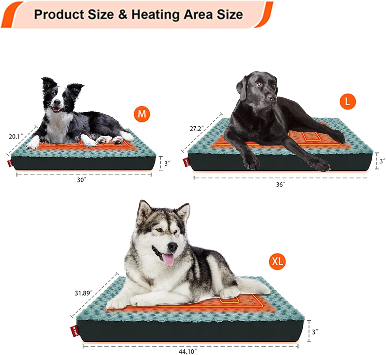 Heated Dog Bed with12V~24V Safe Voltage, Electric Heating Arthritis Orthopedic Dog Bed with Thickened Memory Foam, Heated Pet Bed with Waterproof Cover for Medium Dogs, Large Dogs (Large)
