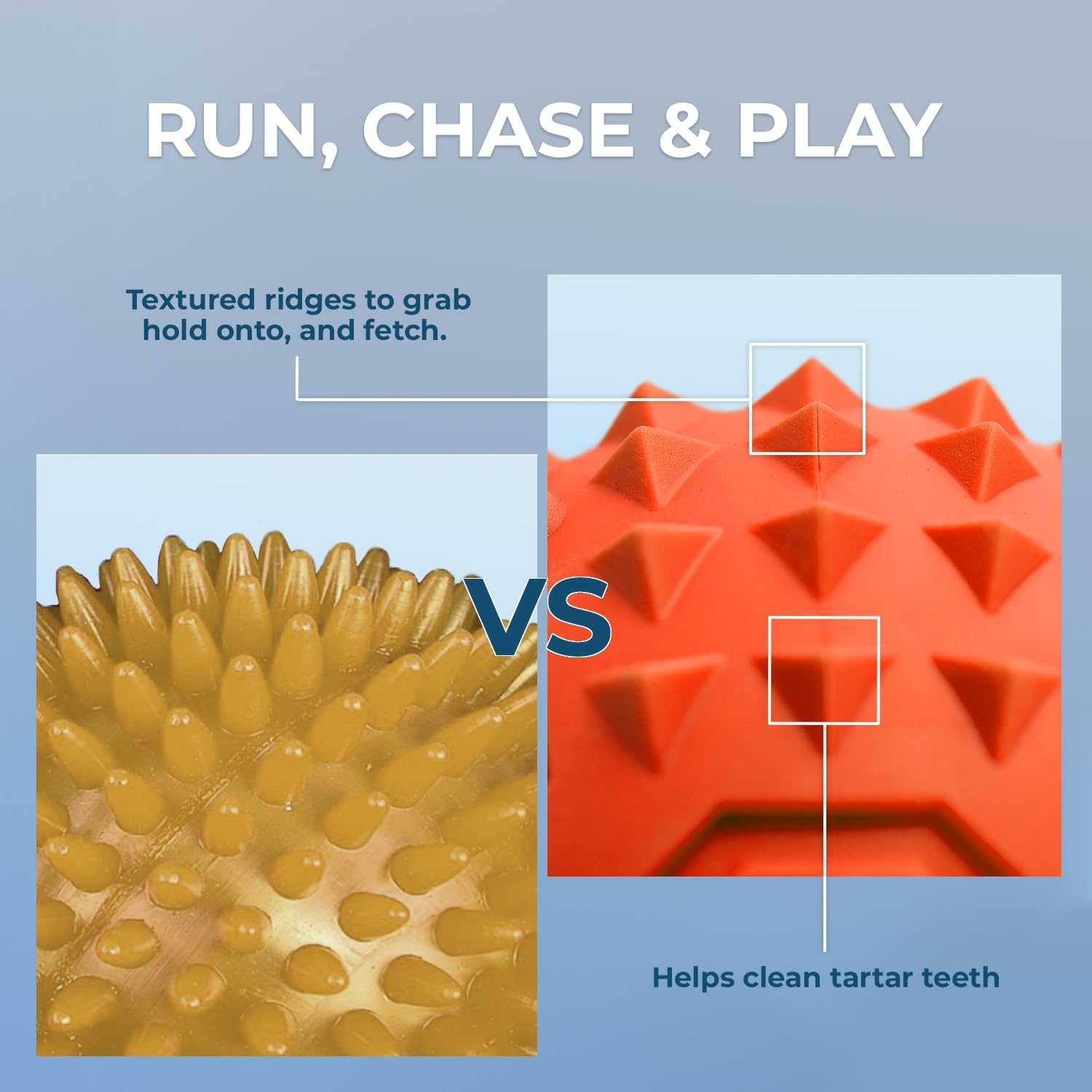 - TEXTURED WITH SPIKES FOR DENTAL HEALTH: The spiked surface of these strong dog toys for aggressive chewers massages gums and cleans teeth, promoting better oral hygiene as they enjoy their favorite squeaky ball