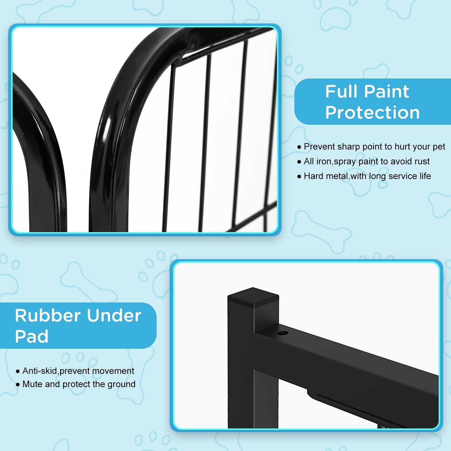 - DURABLE METAL FENCE PANELS: Heavy-duty iron with a rust-resistant finish makes this fence strong and secure. Use the sturdy fence panels as a dog fence outdoor for yard or indoor setup.