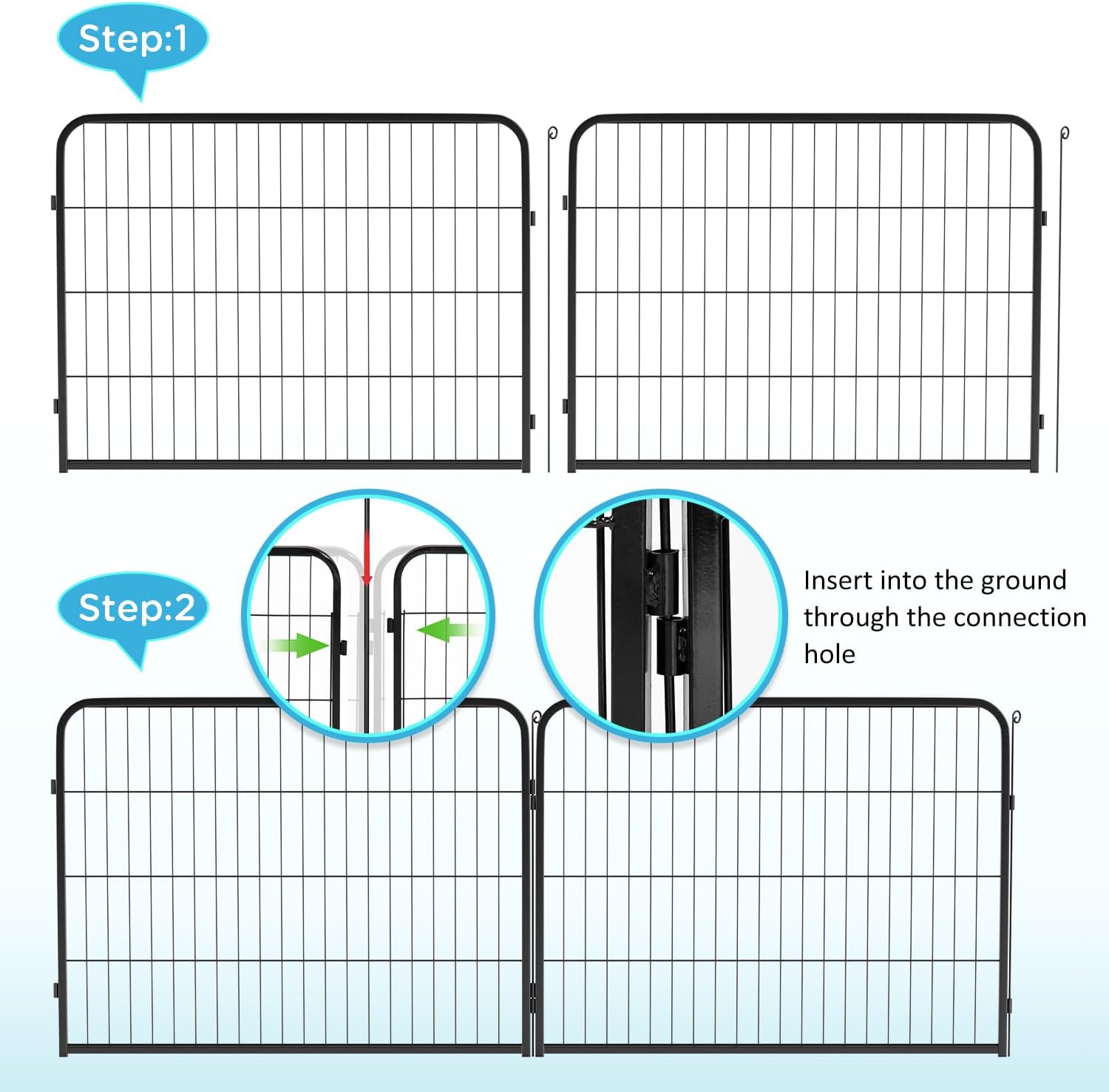 - USE AS EXTENSIONS OR REPLACEMENTS: These strong durable metal fence panels easily connect to expand your existing dog playpen or replace damaged sections, keeping your petโs area safe and secure.