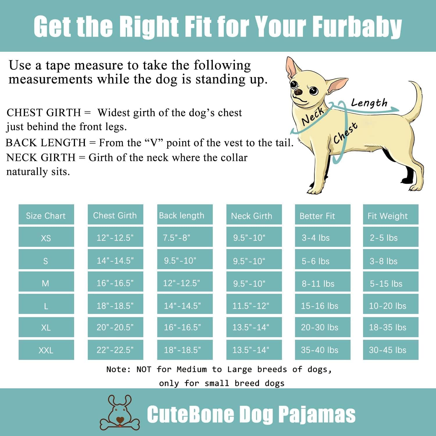 - 【Measure before order】Please measure your dog's chest girth and back length according to our guide before buying. If you want the CuteBone dog clothes to fit your puppy as perfectly as our models, it's better for you to send us your puppy's sizes information for help, we would like to help you to pick out the correct size.