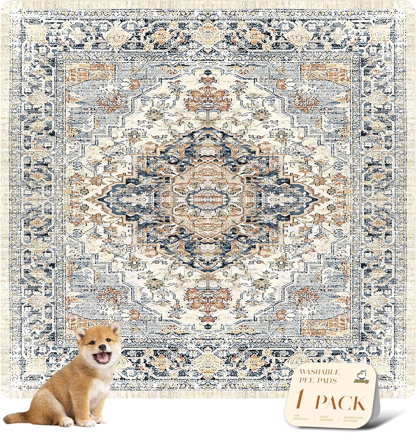 nunubaby Washable Pee Pads for Dogs, Stylish, Non-Slip and Leak-Proof Pee Pads. Reusable Potty Pads for Dogs for Crates and Floors.(Beige/Multi, 72" x72")