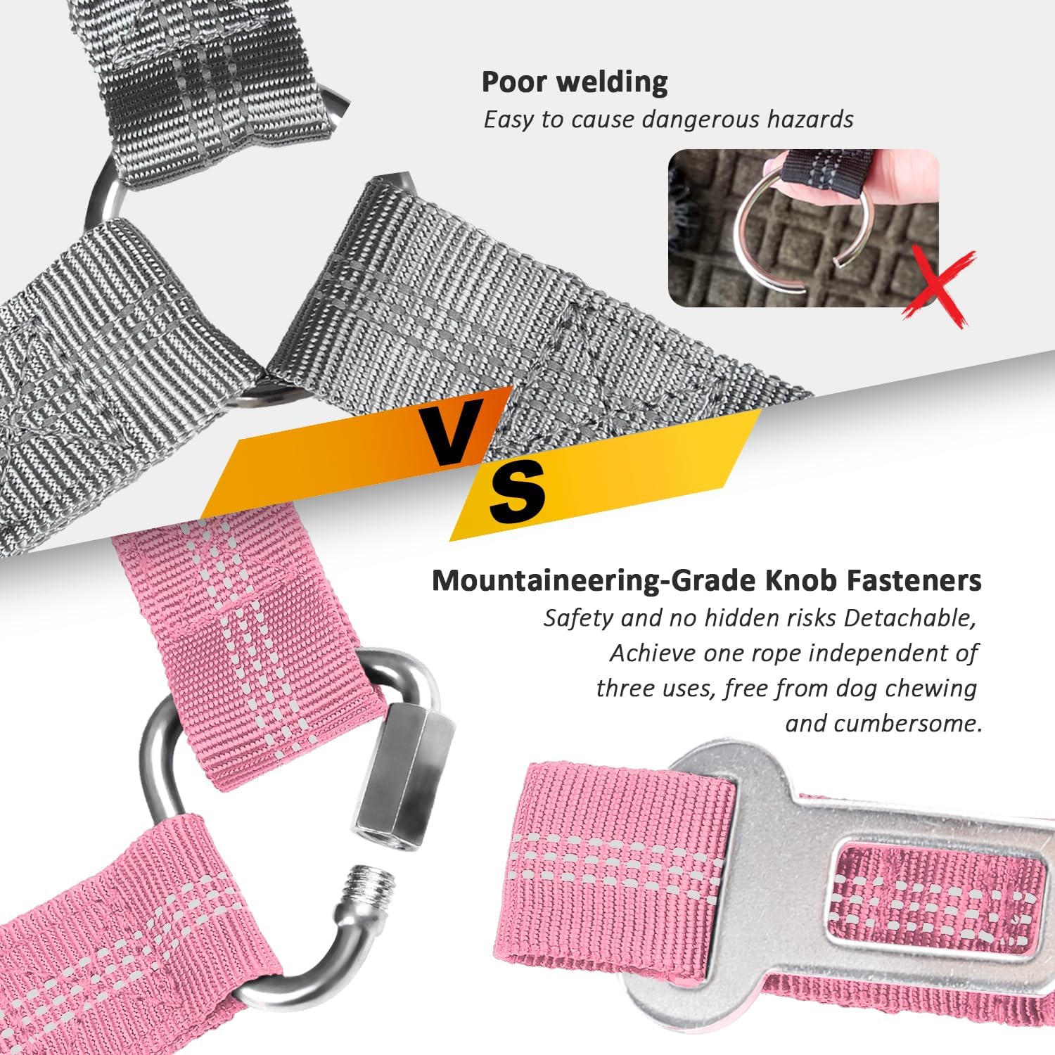 Removable Dog Seat Belt Harness for Car, 3 in 1 Pet Dog Car Seatbelt Leash, Retractable Restraint Secures to Vehicle Headrest & Adjustable Reflective Bungee Dog Seatbelt Tether, Pink