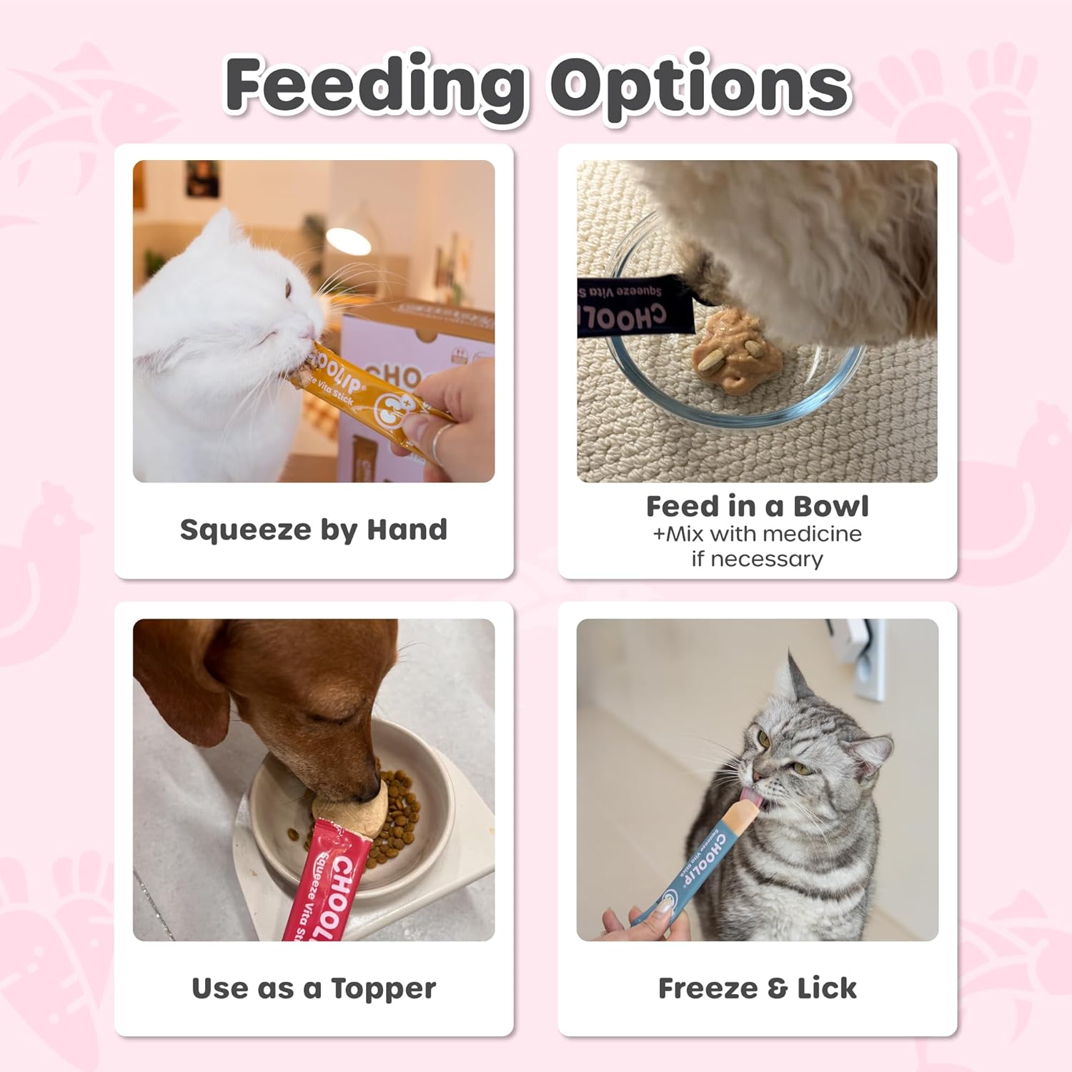 - VITAMIN INFUSED SOFT TREATS: Known as The Vet Who Bakes, Squeeze Vita Sticks were formulated by Korean Veterinarian Dr. Eric, for his cats and dogs. But after becoming popular on his blog, the recipes were upgraded to include health-specific vitamins, then packed into these dog and cat lickable treats