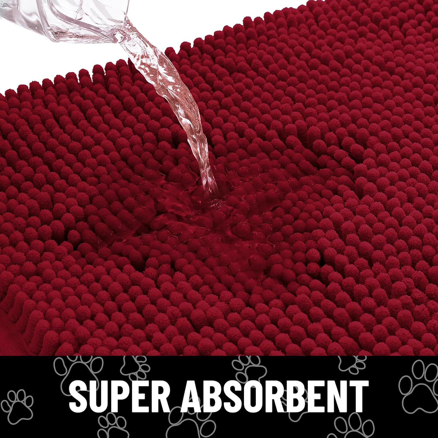 Smiry Dog Door Mat for Muddy Paws, Absorbent Dirt Trapper Non Slip Quick Dry Washable Chenille Mat for Mud Dogs, Entry Rug for Indoor and Outdoor (48x30 Inches, Red)