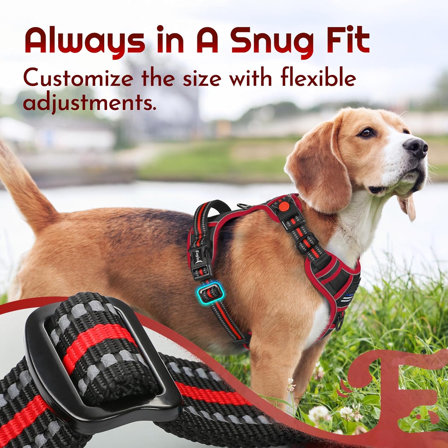 - Precision Fit: Equipped with 4 adjustable straps, the harness can offer a customizable fit, embracing diverse breeds and sizes while leaving ample room for your pup to grow. Size-XL is suitable for neck girths of 18.9"-32.3" and chest girths of 28.0"-39.8"