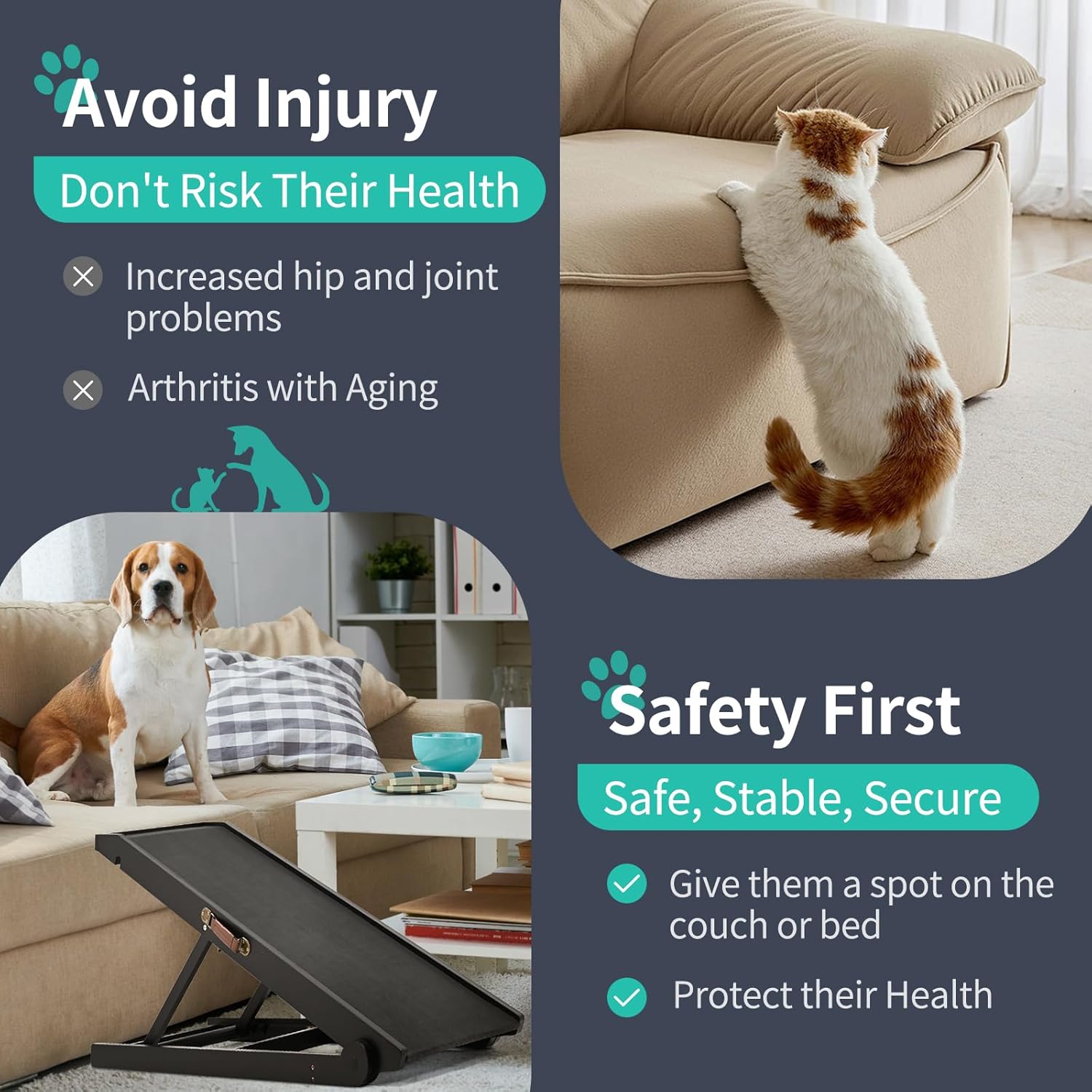 Dog Ramp, Adjustable Height Wooden Folding Pet Ramp for Bed, Couch,SUV-High Traction, Portable Paw Ramps for Small & Large Old Dogs & Cats - Furniture Quality