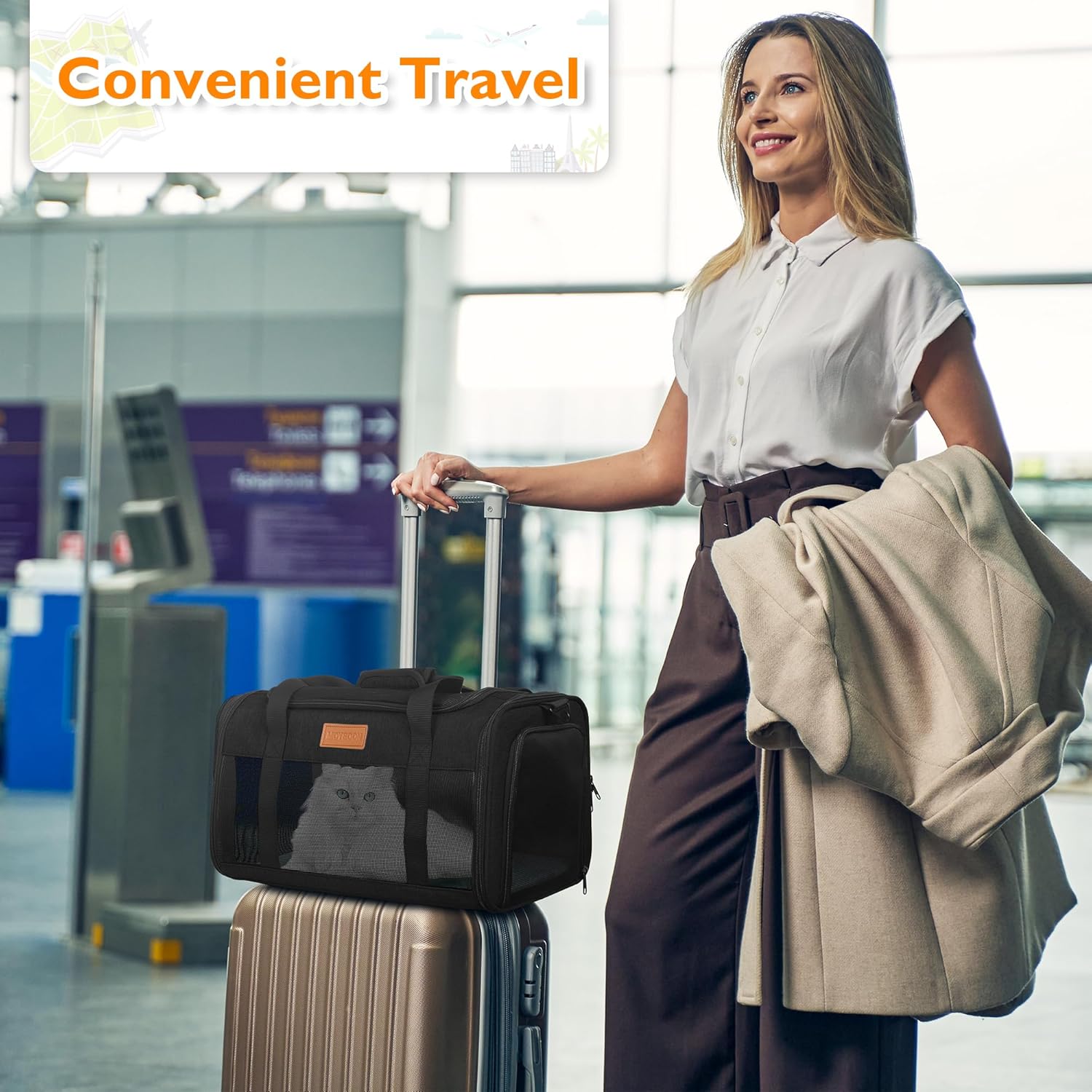 PETUX TSA Approved Pet Carrier in Cabin, 17"x11"x9.5" Soft Cat Carriers for Small Cat up to 12 lb and Puppy up to 10 lb, Top Open Portable Pet Carrier Airline Approved for Travel and Vet Visit (Black)