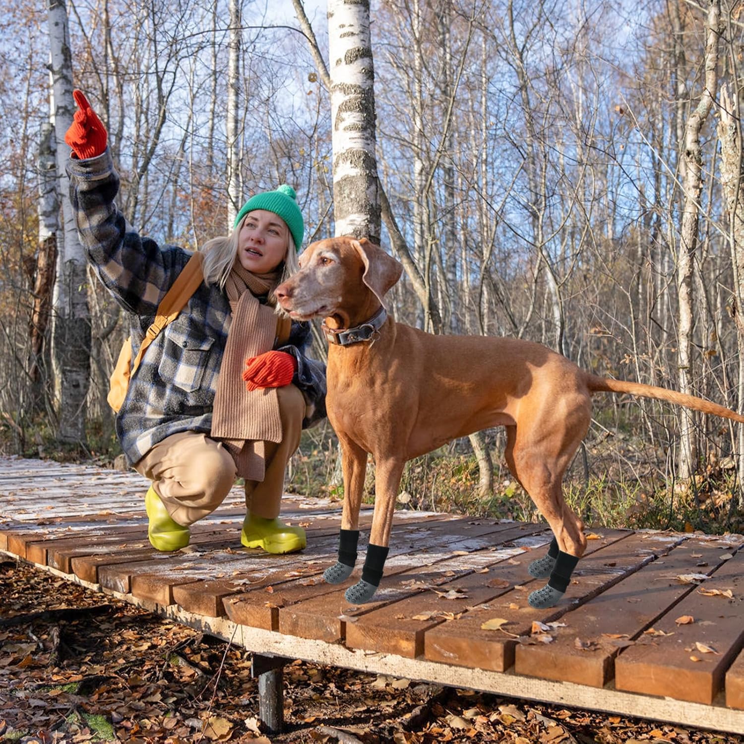 - PREMIUM QUALITY FABRIC: The non slip dog socks made from stretchy and comfortable breathable knitted fabric, soft and lightweight, easier for your dog to wear; the bottom is designed with an extra thick grip for durability, which effectively protects your furry pet's paws from hot and cold sidewalks and rough outdoor surfaces