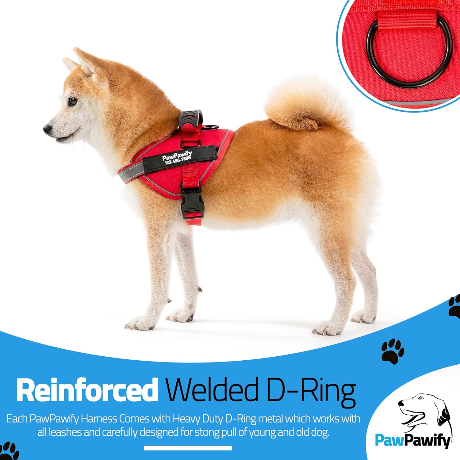 PawPawify Custom No Pull Dog Harness with Name and Phone Number, Heavy Duty Personalized Pet Vest to Prevent Tugging, Pulling, or Choking, Training and Walking (New Red, XS (5-9LBS))