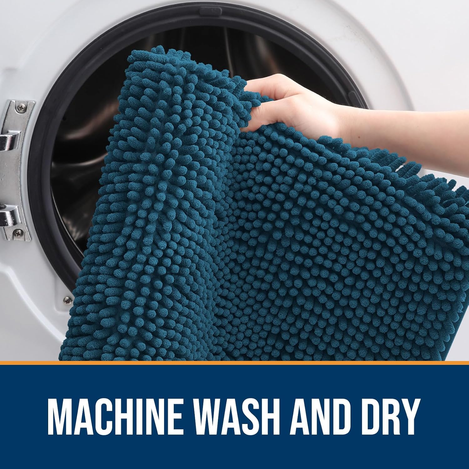 OLANLY Dog Door Mat for Muddy Paws 70x46, Absorbs Moisture and Dirt, Absorbent Non-Slip Washable Doormat, Quick Dry Chenille Mud Mat, Entry Indoor Entryway Carpet for Inside Floor, Atlantic Blue