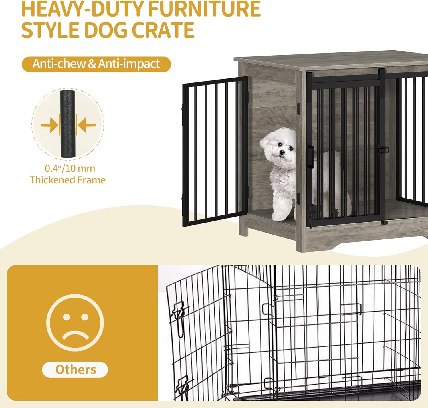 27.2" Dog Crate Furniture with Barn Door, Heavy Duty Dog Kennel Indoor with 2 Doors, Wooden Pet Cage End Table for Small Medium Dogs up to 22 lb, Anti-Chew Anti-Escape, Greige DFC84305B
