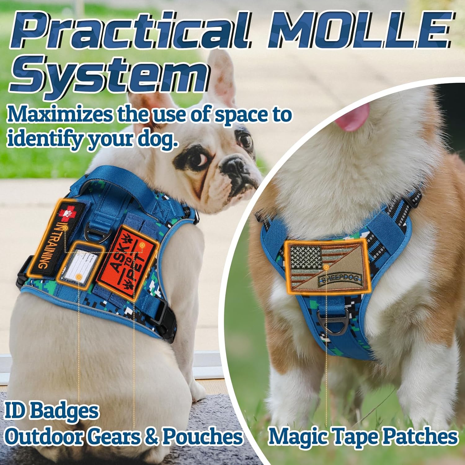 rabbitgoo Tactical Dog Harness Medium Sized Dog, No Pull Military Service Vest with Handle & Molle, Easy Control for Training Walking, Adjustable Reflective Straps, Blue Camo, M