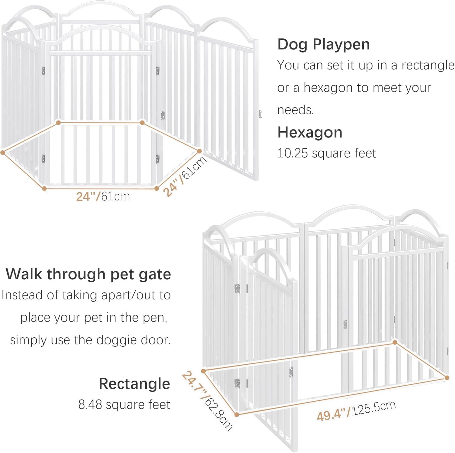 BHG Metal No-Assembly Freestanding Dog Gate with Door Walk Through, Extra Wide 144", Extra Tall 32" Pet Gate, Accordion Puppy Folding Playpen Dog Fence for Indoor & Outdoor, with 2PCS Support - White