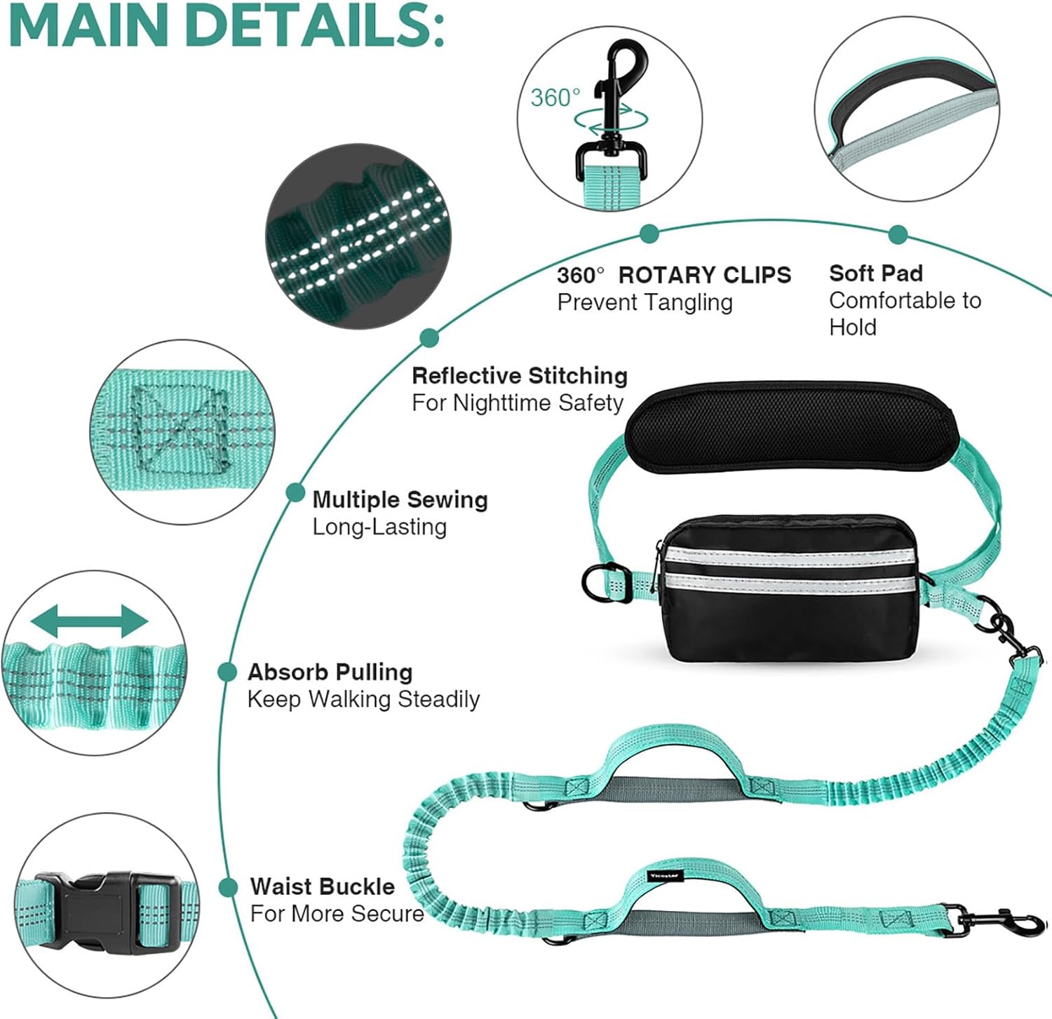 Hands Free Dog Leash, Retractable Bungee with Double Padded Handles, Waist Leash for Dog Walking, Heavy Duty Dog Leash for Medium & Large Dog, Dog Walking Accessories, Green