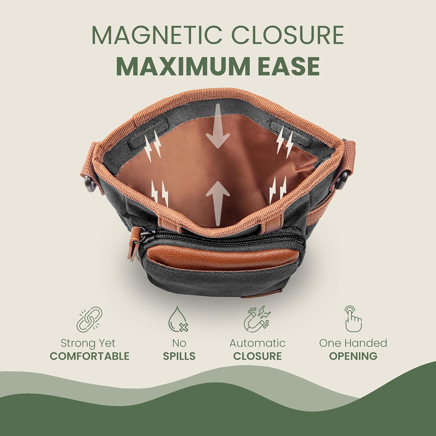 - 【EFFORTLESS ONE-HANDED ACCESS】 - The magnetic closure of this puppy treat pouch ensures fast access to treats, allowing you to reward your dog effortlessly during training sessions or walks without breaking the flow.