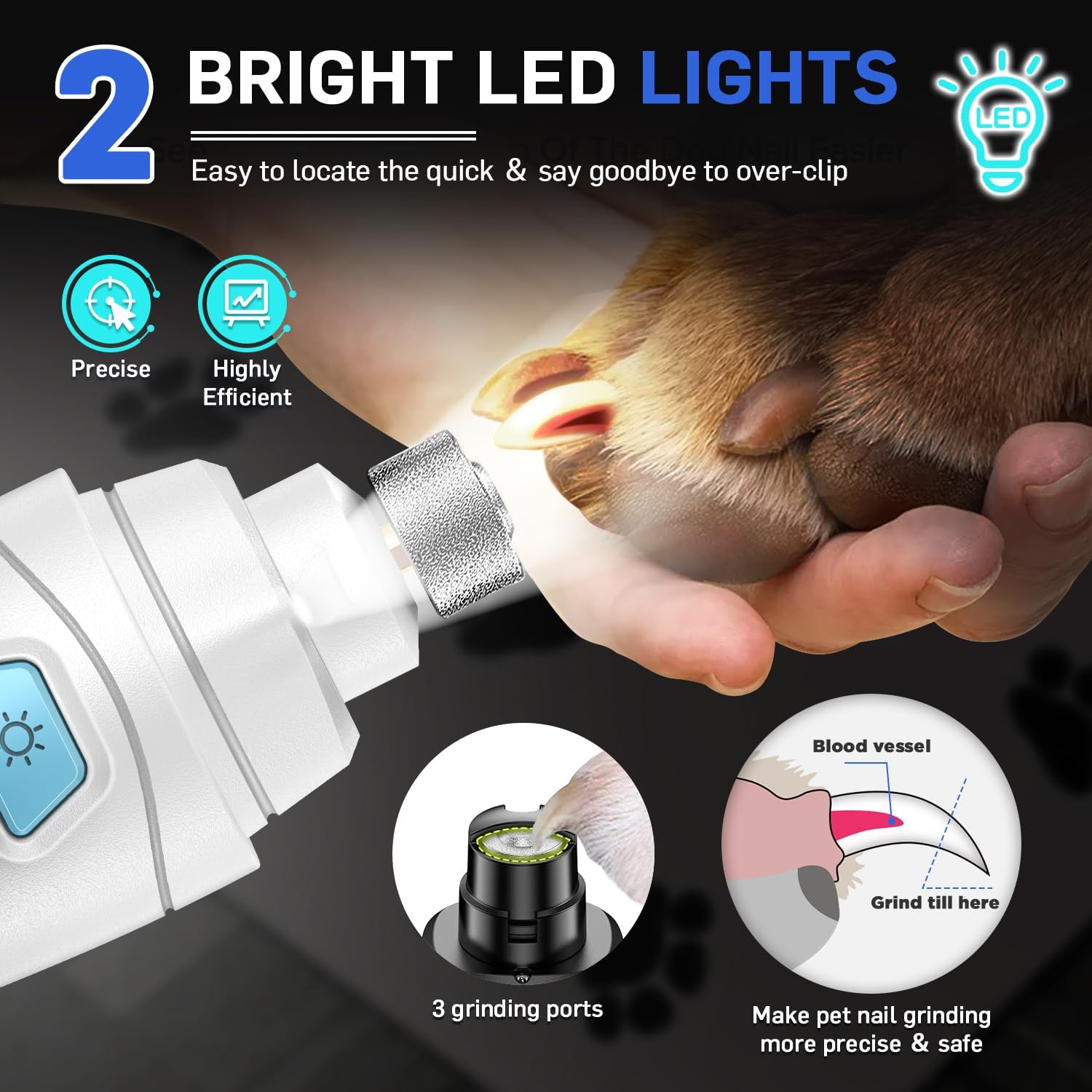 Dog Nail Grinder & Clipper 2-in-1 Set - 25dB Ultra Quiet with 3 Grinding Wheels & 2 LED Lights, Rechargeable for Large/Puppy Dogs & Cats, 3-Speed Adjustable for Anxious Pets