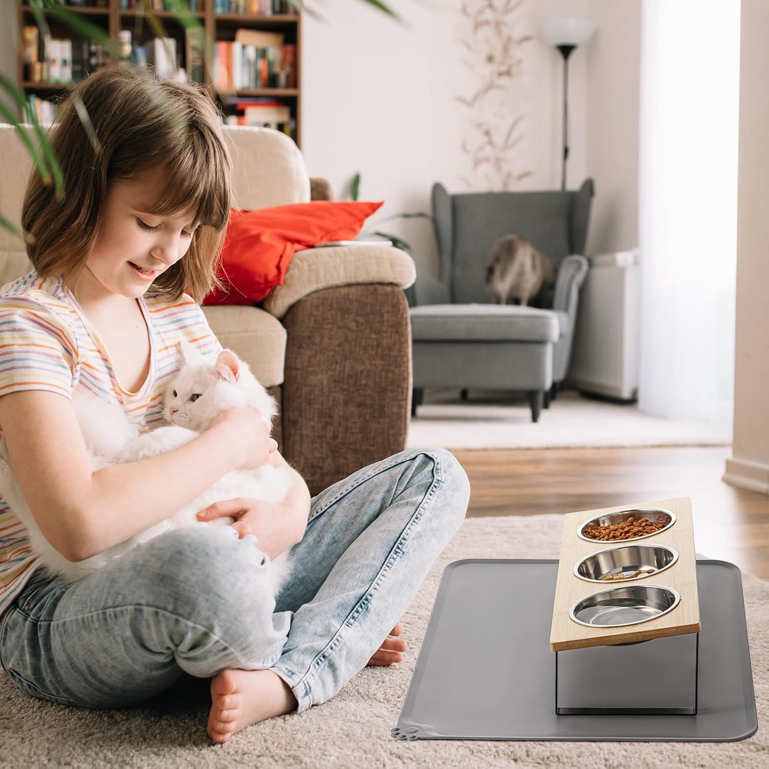 - Pet Safe Material:The cat food and water bowl set are made of premium food-grade stainless steel bowls which are rust-resistant and removable. Dishwashers safe and easy to clean
