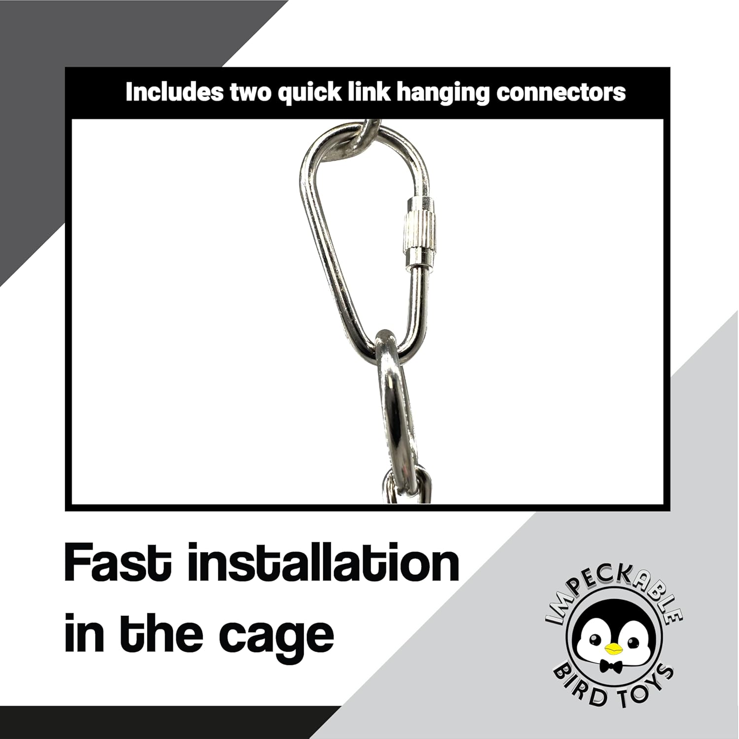 - * Quick link connectors allow secure hanging in various cage spots and let you rotate positions to keep toys fresh and exciting