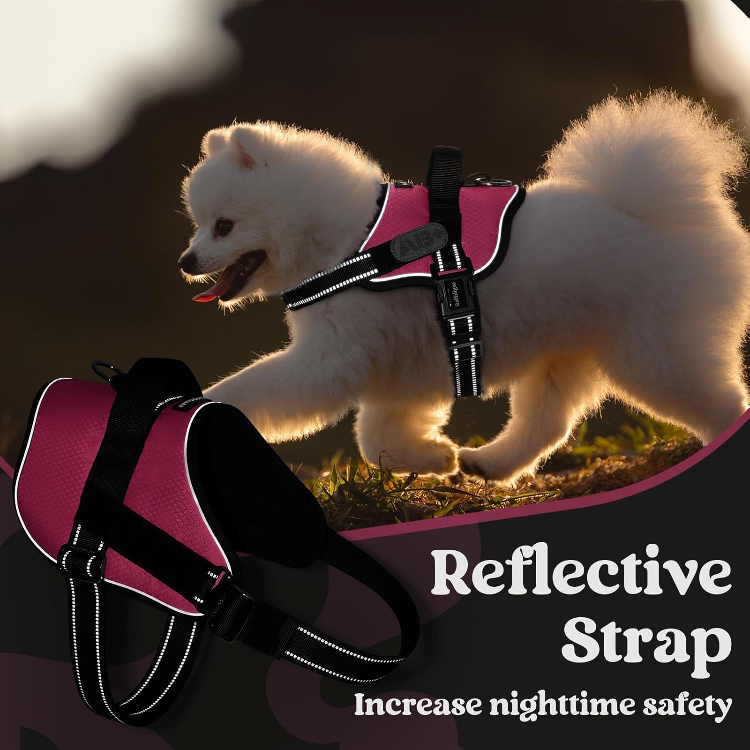 - Safety and Control Made Easy: Walk with confidence! A strong D-ring and durable nylon handle offer full control, while reflective strips keep your dog visible in low light. Whether on busy streets or dimly lit paths, this harness prioritizes safety with every step.