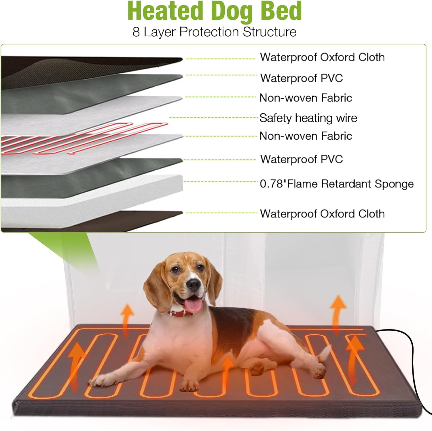 - Safe Heating System: UL-tested 12V heating pad with adjustable temperature (89-116Β°F), time settings (2, 4, 6 hours),preventing overheating or chilling, ensures consistent warmth. 6.5 ft chew-resistant cord adds an extra layer of safety