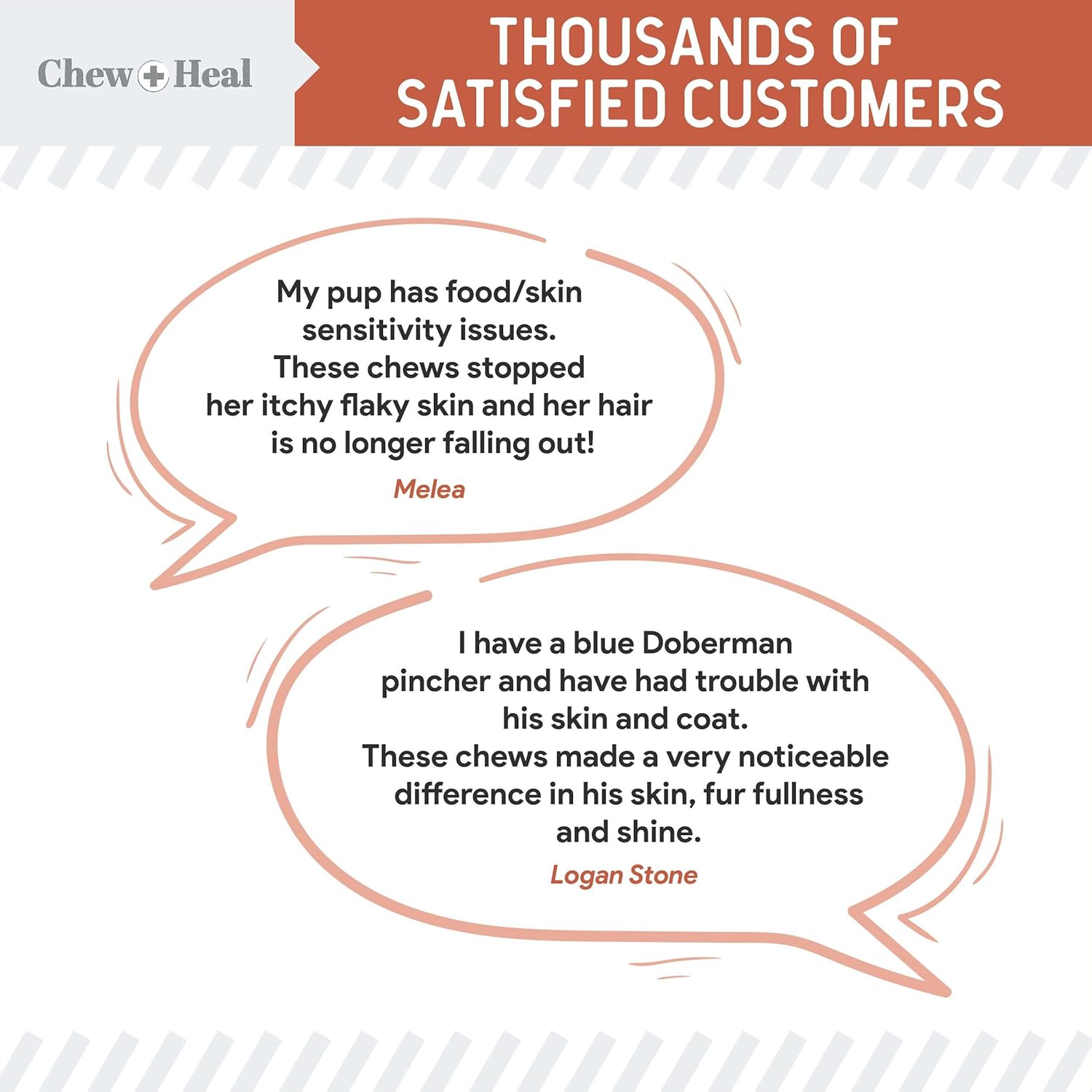 - PREVENTS SKIN ALLERGIES: This anti itch for dogs not only softens the skin, it gives it a glossy shine and helps prevent allergic reactions. This reduces dandruff and itchy skin, helping make your dog feel more comfortable in addition to being healthier! Say goodbye to greasy or dirty coats that have a unpleasant oily smell. These dog bites help kick-start the bodyโs natural processes to improve fur health.