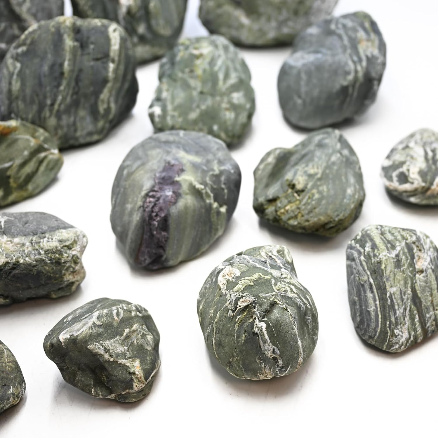 - 100% Natural Green River Rock— Made from genuine natural stone, this hard, dense, and durable rock is an ideal alternative to artificial resin stones. Perfect for freshwater aquariums, it is safe for long-term soaking with minimal impact on water pH, making them ideal for freshwater fish tanks.