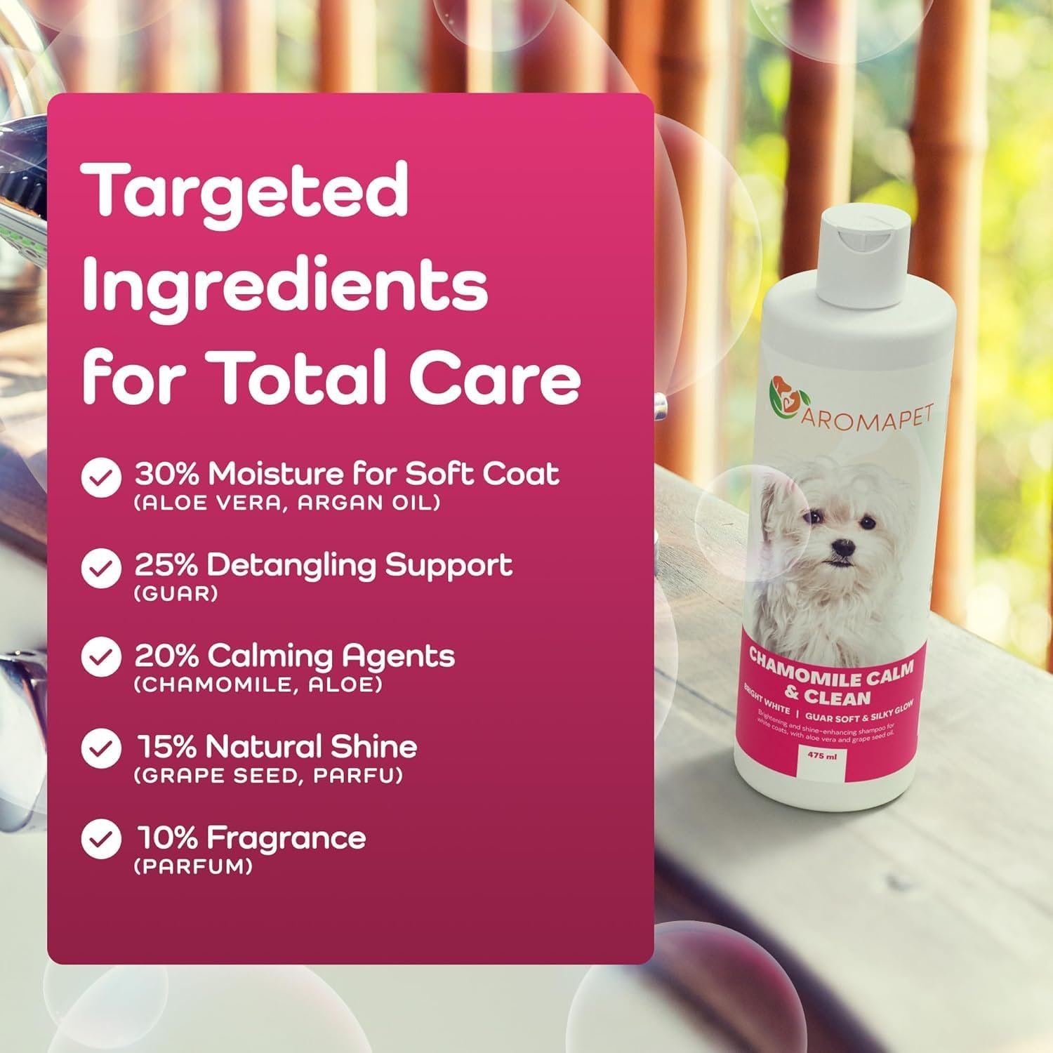 Chamomile Calm & Clean Dog Shampoo for White Coats - Deodorizing Dog Shampoo with Aloe, Argan Oil, Chamomile, Grape Extract - Great for Maltese, Gentle, Hypoallergenic. Soft & Silky Glow.