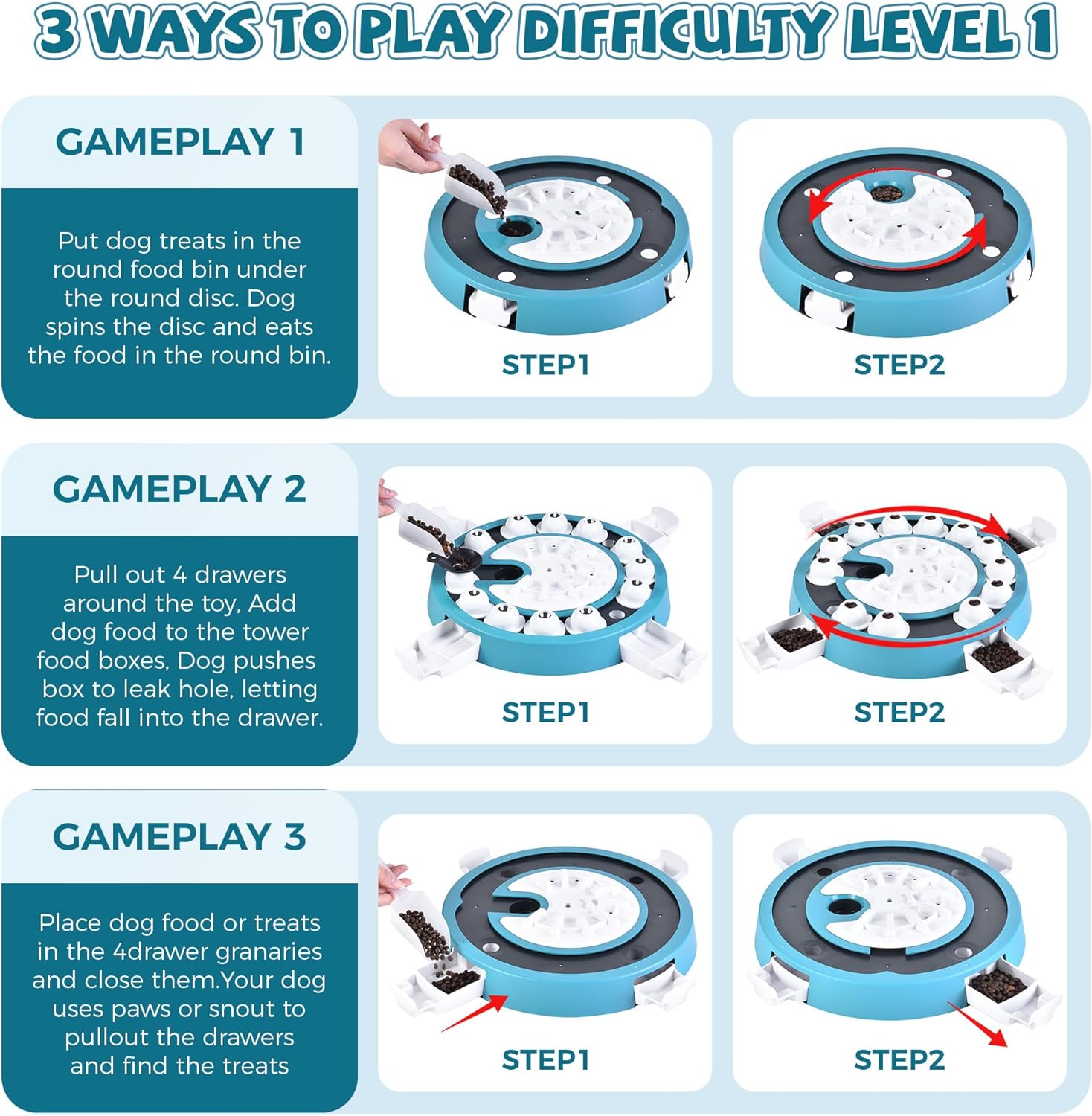 - Dog Puzzle Toy - Watch as your dog enjoys the challenge of figuring out how to access the hidden treats within the various compartments of this puzzle toy. Let them work for their snacks, Stimulate their brains and encourage problem-solving abilities while keeping them entertained and engaged.
