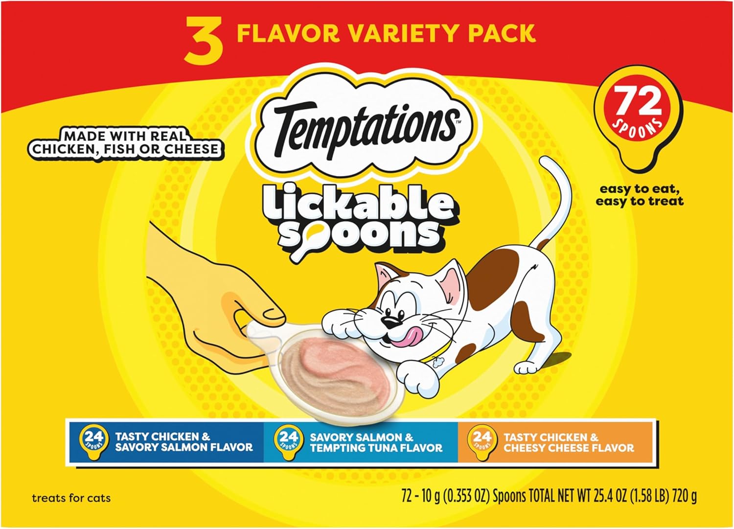 Temptations Lickable Spoons Adult Wet Cat Treats, 72 Spoons, Variety Pack