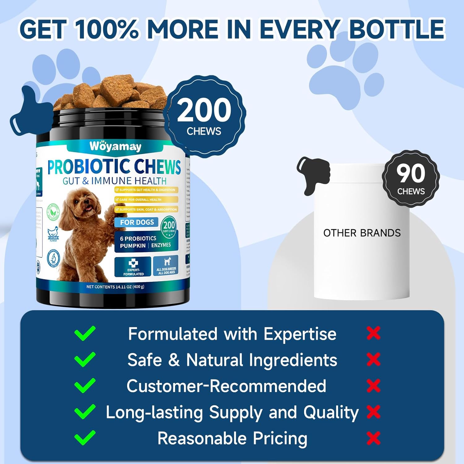 Dog Probiotic for Dogs, 200 Soft Treats Dog Probiotics for Digestive Health & Immune System, Probiotic Chews for Dogs, Support Gut Health|Itchy Skin|Diarrhea|Gas Relief Treatment